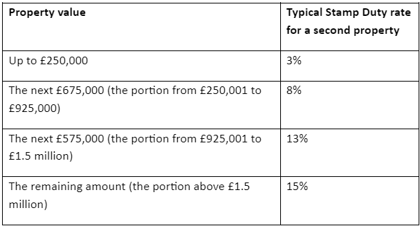 When buying a second property, the first tax charge you’re likely to need to pay is Stamp Duty.